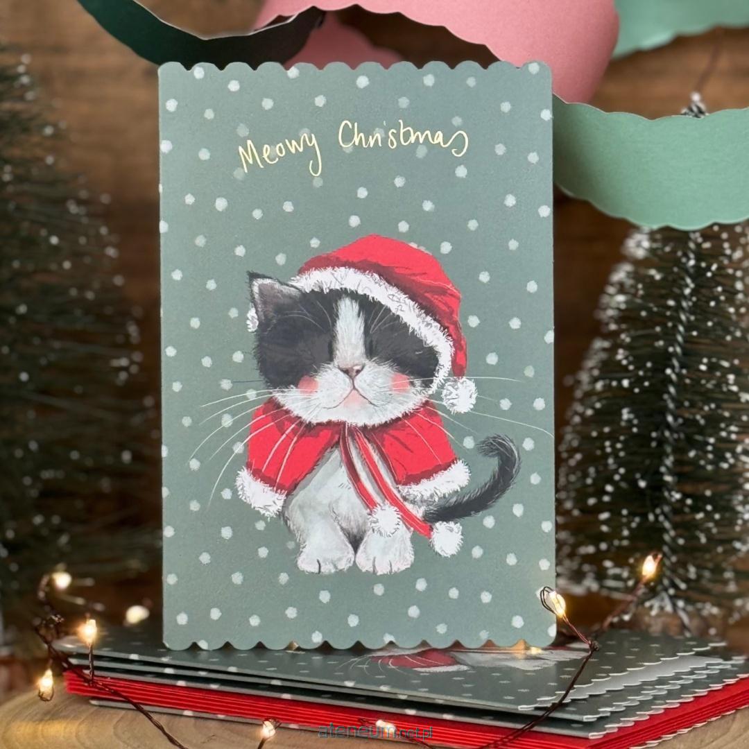 Karnet mini brokat z kopertą Święta Kotki