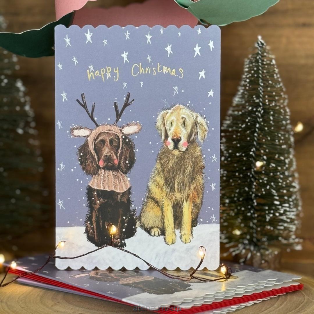 Karnet Święta kwadrat Świąteczne psy La la la