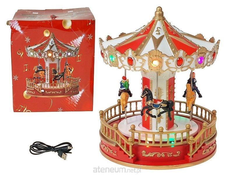 karuzela 4 konie, muzyka, światło, z kablem USB do ładowania, 23x19x9cm; 25x22x22cm, Box