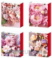 Torebka prezentowa uniwersalna L Kwiaty motyle MIX