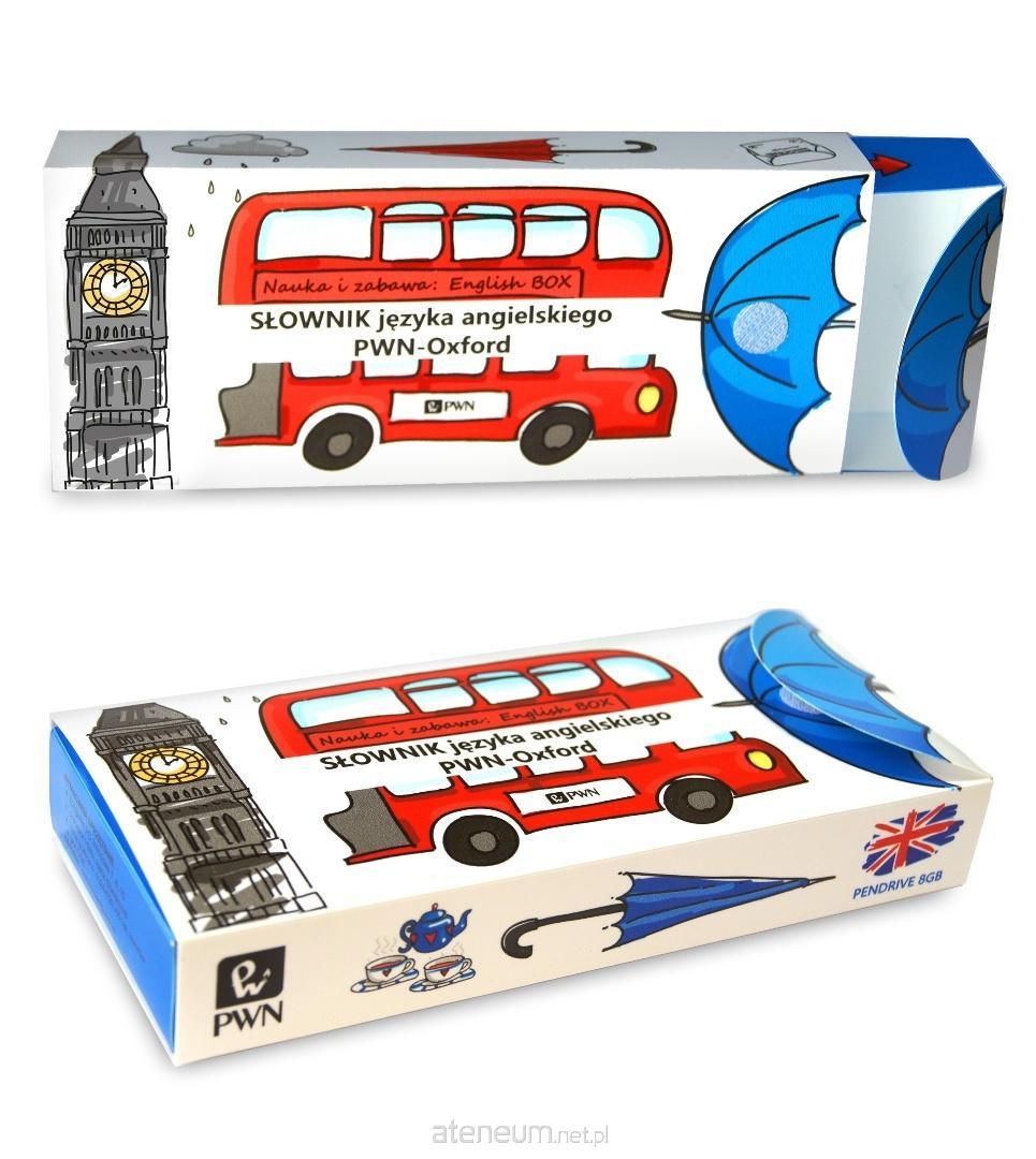 Nowoczesny multimedialny słownik angielsko-polski i polsko-angielski PWN-Oxford Nauka i zabawa: English BOX stanie się ulubionym narzędziem nauki dla dzieci i młodzieży! Ponad 300 000 angielskich i polskich znaczeń, zwrotów, fraz i idiomów, przykłady ich użycia oraz nagrania wymowy, bogate materiały dodatkowe a także atrakcyjne gry i zabawy doskonalące kompetencje językowe - to wszystko zostało zaprezentowane w przyjaznej dla młodego użytkownika formie. Wystarczy zainstalować program na dysku komputera i rozpocząć fascynującą naukę języka angielskiego! Słownik powstał dzięki połączeniu doświadczenia i tradycji dwóch renomowanych wydawnictw: Wydawnictwa Naukowego PWN i Oxford University Press. Będzie idealnym pomysłem na mądry i wartościowy prezent. Zestaw zawiera program multimedialny, pendrive o pojemności 8GB oraz piórnik z trwałego tworzywa do przechowywania przyborów szkolnych i innych dziecięcych skarbów.
