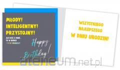 Karnet urodzinowy z tekstem. Papier: papier pocztówkowy 240 g Karnet jest zafoliowany, sprzedawany jest w zestawie z kopertą.