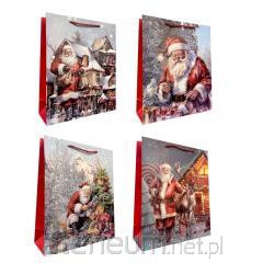 Świąteczna torebka prezentowa wykonana z trwałego papieru, utrzymana w klasycznej, eleganckiej stylistyce. Idealna do zapakowania prezentów pod choinkę, nadaje upominkom wyjątkowy, odświętny charakter. Wyposażona w mocne uchwyty i staranne wykończenie, łączy estetykę z praktycznością.