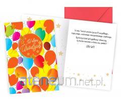 Karnet urodzinowy z tekstem. Papier: papier pocztówkowy 240 g Karnet jest zafoliowany, sprzedawany jest w zestawie z kopertą.