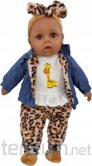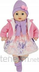 Głowa, dłonie oraz stopy lalki wykonane są z winylu, korpus miękki wykonany z materiału. Ubranko można zdjęć i prać.