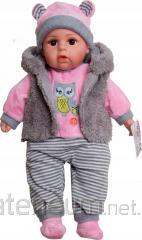 Głowa, dłonie oraz stopy lalki wykonane są z winylu, korpus miękki wykonany z materiału. Ubranko można zdjęć i prać.