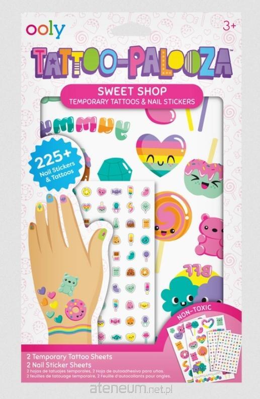 Najsłodsze tatuaże i naklejki na paznokcie, jakie stworzono! Zestaw Tattoo-Palooza Słodki Sklep pozwoli Ci pokazać swój cukierkowy styl i doda Twoim stylizacjom odrobinę pastelowej magii. W środku znajdziesz dwa arkusze tymczasowych tatuaży i dwa arkusze naklejek na paznokcie, inspirowane sklepikiem ze słodyczami. Urocze serduszka, lizaki i tęczowe motywy sprawią, że każda zabawa, przyjęcie urodzinowe czy dzień w przedszkolu zamieni się w kolorowe święto kreatywności. W zestawie znajduje się ponad 225 elementów, łatwych w aplikacji, bezpiecznych dla skóry i nietoksycznych. Tatuaże i naklejki OOLY są przeznaczone dla dzieci od trzeciego roku życia.