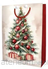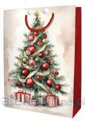 Elegancka torebka prezentowa wykonana z wysokiej jakości papieru, wyposażona w praktyczne zapięcie na zatrzask w górnej części, które dyskretnie zabezpiecza prezent i podkreśla ekskluzywny charakter opakowania. Wymiary po rozłożeniu: 460 330 140 mm.