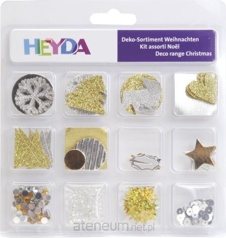 Zestaw elementów dekoracyjnych o tematyce świątecznej do stworzenia kartek, albumów, prac plastycznych lub ozdób bożonarodzeniowych. Całość jest dopasowana kolorystycznie. Zestaw zawiera ponad 100 pojedynczych elementów, min.: elementy z brokatowego kartonu, koraliki, konfetti, cekiny. Wielkość opakowania 16 x 17 cm.