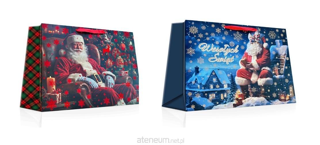 Torba prezentowa świąteczna TB-3 MIKOŁAJ POZIOMA, wymiar 40X30X10, 210g, pakiet mix 12szt wysyłana losowo