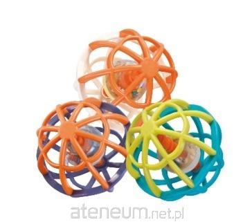 Turlanie i wirowanie na całego! Piłeczka w piłeczce? Tak! Wewnątrz tej pomysłowej grzechotki kryje się kula, wypełniona koralikami. Gdy obróci się zabawkę do góry nogami, kryjąca się w jej wnętrzu grzechocząca kapsuła zjedzie w dół, zabawnie przy tym wirując. Ścianki piłki tworzy fantazyjnie powyginana kratka, co ułatwi małych rączkom chwytanie zabawki. Piłeczka dostępna jest w trzech różnych wersjach kolorystycznych, każda z nich sprzedawana jest oddzielnie.