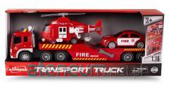Zestaw zawiera: helikopter, wóz strażacki z drabiną, auto dowódcy, wóz strażacki z armatką