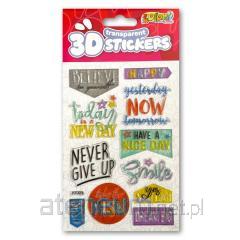 Wypukłe naklejki na transparentnym podłożu. Zróżnicowana ilość sztuk na arkuszu. Do zdobień na kartkach okolicznościowych, pocztówkach, pudełkach na prezenty, torbach prezentowych, do dekoracji domu. Łatwo usuwalne . Format 11x20 cm.