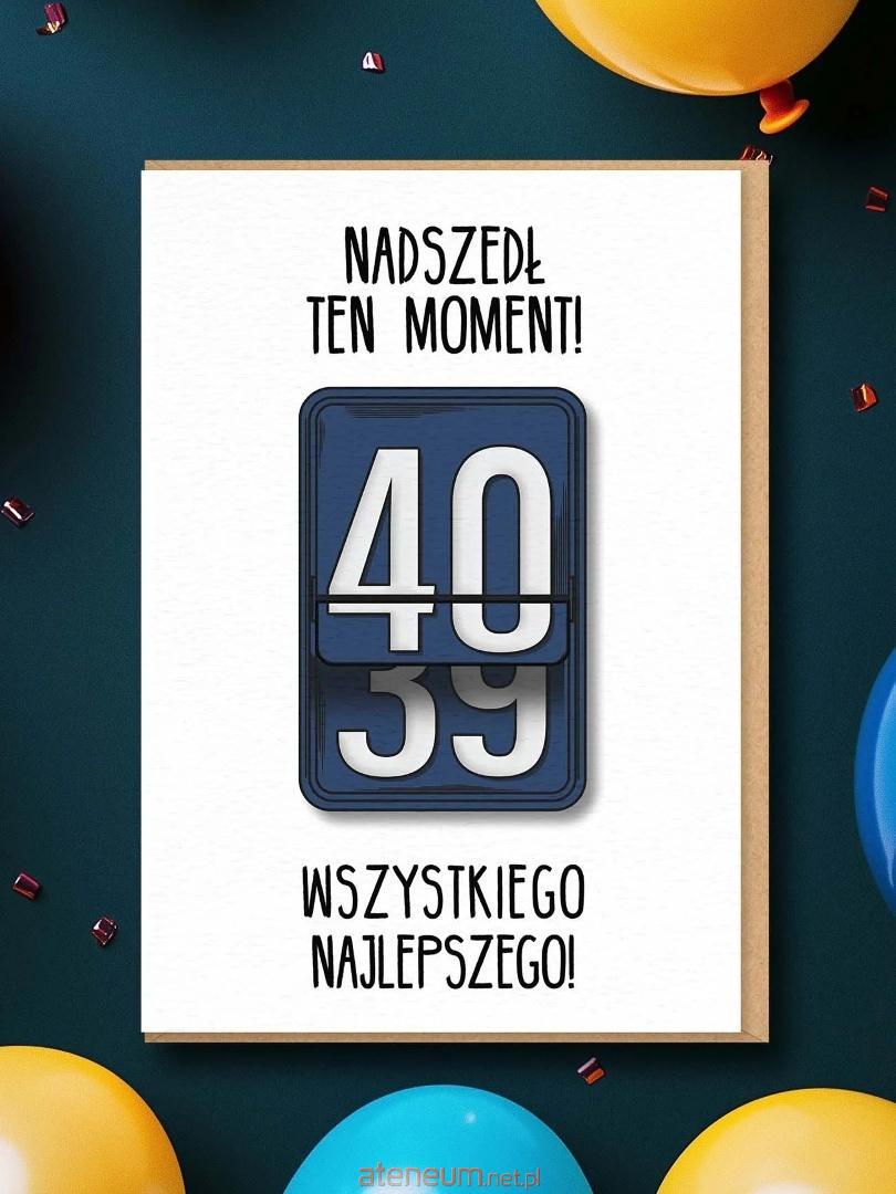 Czterdziestka - czyli druga młodość z lepszym planem dnia. Kartka przypomina, że życie zaczyna się po czterdziestce, a poczucie humoru to najlepszy eliksir młodości.