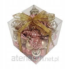 Elegancki stroik / wieniec na Boże Narodzenie, o średnicy około 25-30cm. Nadaje się do powieszenia na drzwiach, oknie lub położenia na stole. Otwór w środku pozwala na umieszczenie dużej świecy.