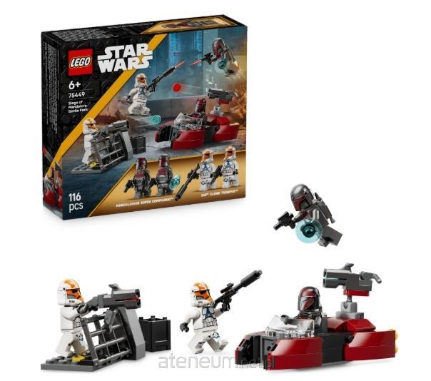 Z zestawem bitewnym LEGO Star Wars Oblężenie Mandalory (75449) dzieci będą mogły odegrać własną wersję bitwy z serialu Gwiezdne Wojny: Wojny klonów. Ta zabawka dla chłopca i dziewczynki od 6 lat zawiera cztery minifigurki LEGO Star Wars dwóch mandaloriańskich superkomandosów i dwóch żołnierzy-klonów 332. pułku w malowaniu Ahsoki, a także mandaloriański śmigacz, barykadę komandosów oraz mnóstwo akcesoriów do pełnej akcji zabawy.