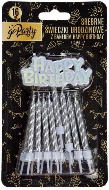 16 świeczek urodzinowych (0,55 X 6 cm) w kolorze srebrnym metalicznym
