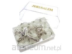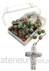 Centralnym punktem tej dziesiątki jest duży, ozdobny krzyż o wymiarach 34x23 mm. Krzyż jest dwustronny: z jednej strony znajduje się wyraźny wizerunek Św. Krzysztofa, patrona kierowców i podróżnych, a z drugiej strony - ciepłe przedstawienie Świętej Rodziny, symbolizujące opiekę, miłość i bezpieczeństwo. Takie połączenie symboli czyni różaniec niezwykle wartościowym duchowo przedmiotem.