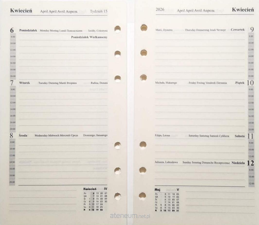Układ kalendarza: Tygodniowy 162 strony.