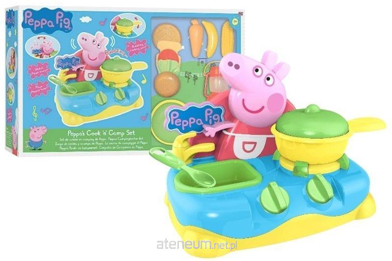Świnka Peppa ma dla Ciebie piękną kuchnię w kolorach niebieskim, zielonym i żółtym. Peppa pomoże ci przygotować posiłki dla twoich lalek, odtworzy melodię motywu Świnki Peppy aby gotowanie było przyjemniejsze! Zestaw zawiera miedzy innymi, kuchenkę dwu palnikową, butlę gazową, garnuszek, talerzyk, plastikowe jedzenie: kukurydzę, udko z kurczaka, hamburgera i inne.