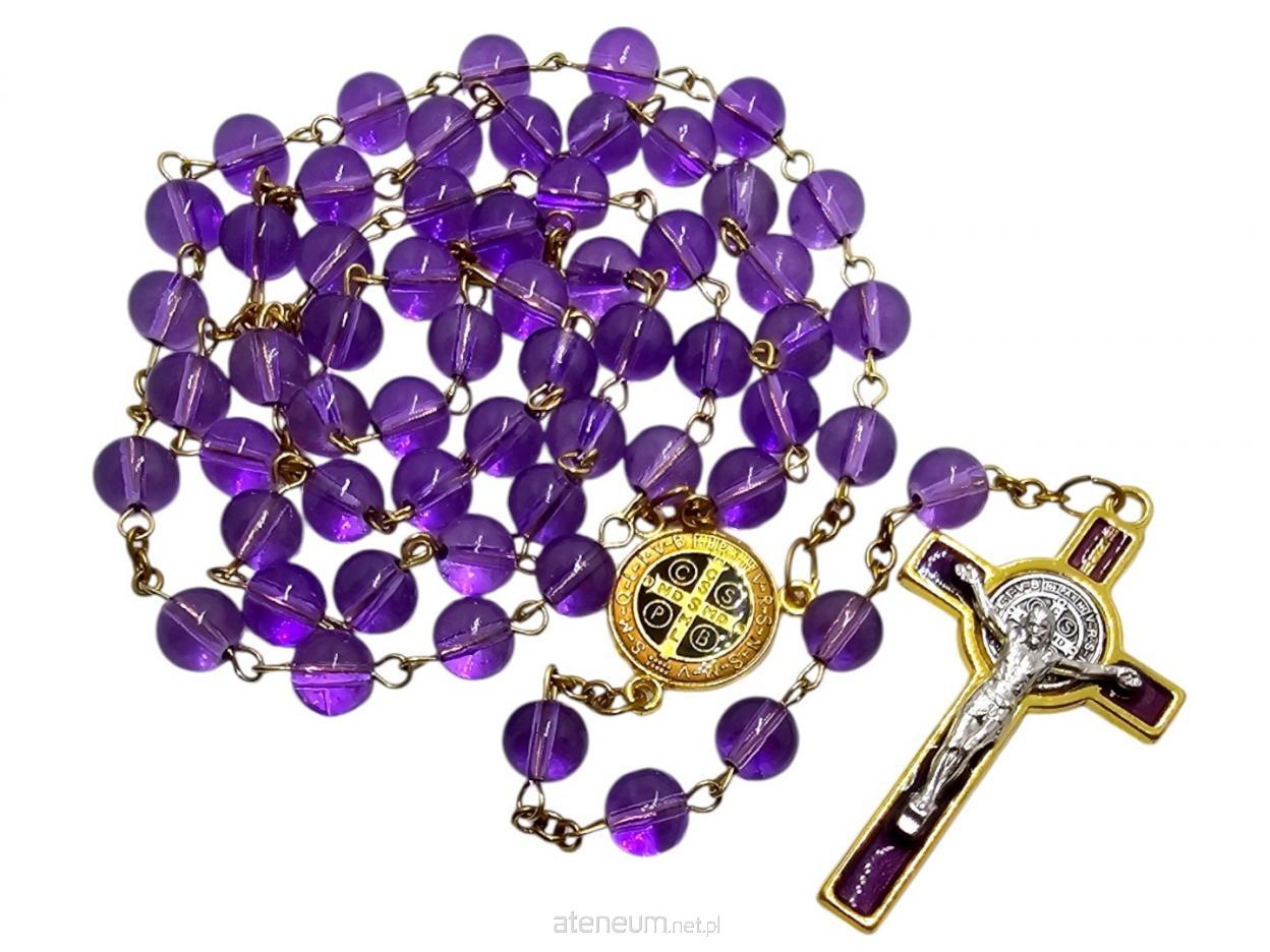 Fioletowy Transparentny Różaniec św. Benedykta.