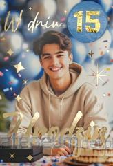 Karnet 3K to bogato zdobiony karnet z elementem naklejanym oraz złoceniem. Karnet to doskonały dodatek do prezentu. Karnet zawiera również zabawne życzenia.