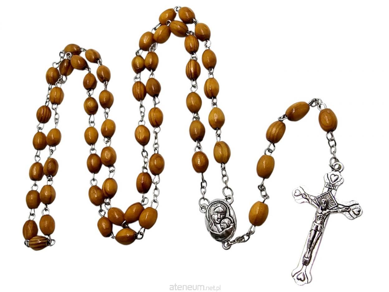 Drewniany Różaniec z Drzewa Oliwnego na Łańcuszku - Matka Boża, Dzieciątko i Ziemia Święta