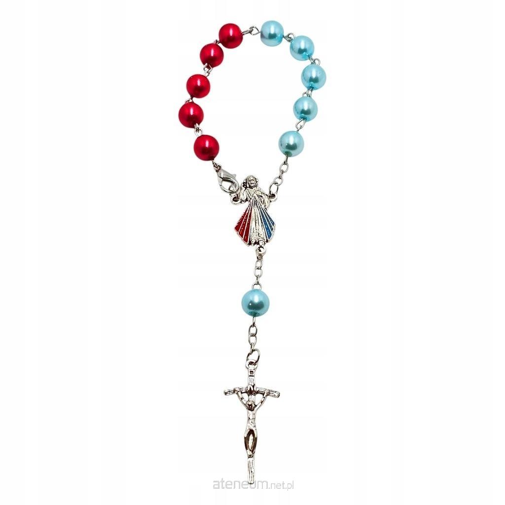Wyjątkowa, zapinana dziesiątka różańca, idealna do codziennej modlitwy, a także jako religijny akcent w samochodzie. Łącznikiem jest wizerunek Jezusa Miłosiernego, a całość zwieńczona jest krzyżem papieskim. Kuleczki dziesiątki są w dwóch kolorach: błękitnym i czerwonym, nawiązując do promieni miłosierdzia z obrazu "Jezu, ufam Tobie". Ta piękna i praktyczna dziesiątka różańca to doskonały sposób na duchowe wsparcie w podróży i codziennym życiu.