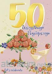 Karnet A5 Urodziny 50 - Patera z truskawkami
