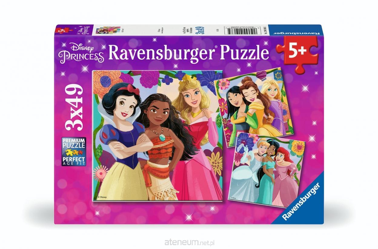 Disney Princess 3x49p Odkryj idealne dopasowanie! Ravensburger ma idealną układankę dla każdego dziecka. Dzięki interesującym motywom, strategicznym rozmiarom elementów i różnorodnym formatom sukces jest gwarantowany dla wszystkich grup wiekowych i poziomów umiejętności. Ciesz się jakością Ravensburger dzięki tej rodzinnej rozrywce! Wiek: 5