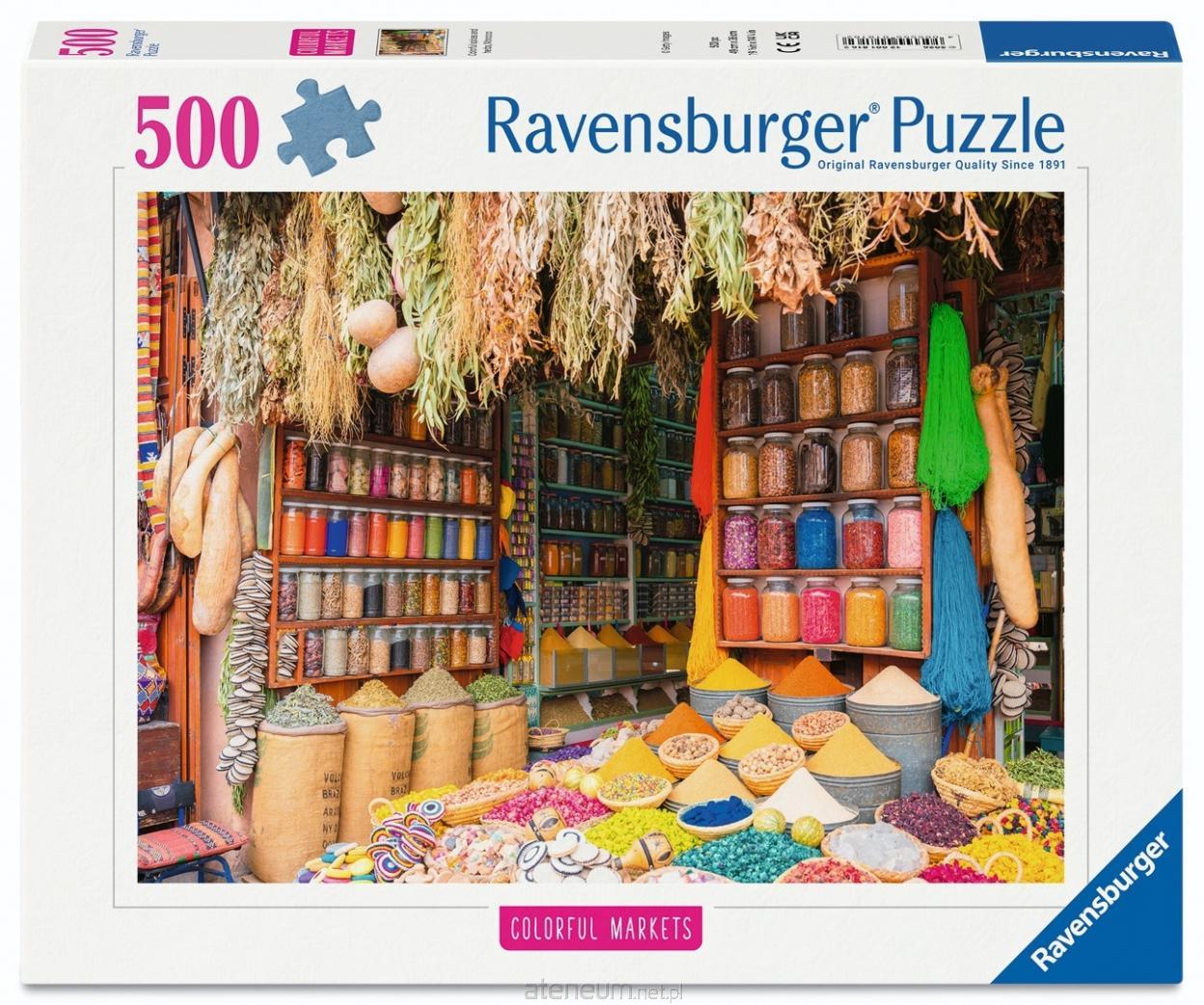 Seria puzzli "Colorful Markets" firmy Ravensburger przedstawia kolorowe targowiska i bazary z całego świata. Starannie wybrane zdjęcia zapraszają miłośników puzzli w sensoryczną podróż do Indonezji, Maroka, Francji i Chorwacji. Z 500 elementów można ułożyć stragany z orientalnymi przyprawami i lokalnymi owocami, kolorowe kwiaty lub pływający targ z łodziami wyładowanymi towarami.