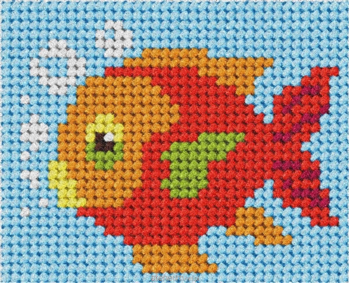 Zestaw do haftu z włóczką idealny dla dzieci i początkujących! Tkanina z nadrukiem, igła, włóczka i instrukcja w zestawie Wymiar haftu: 17 x 20.5 cm.
