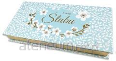 Kartka jest bogato i różnorodnie zdobiona (zależnie od wzoru: metaliczna folia, lakier perłowy,