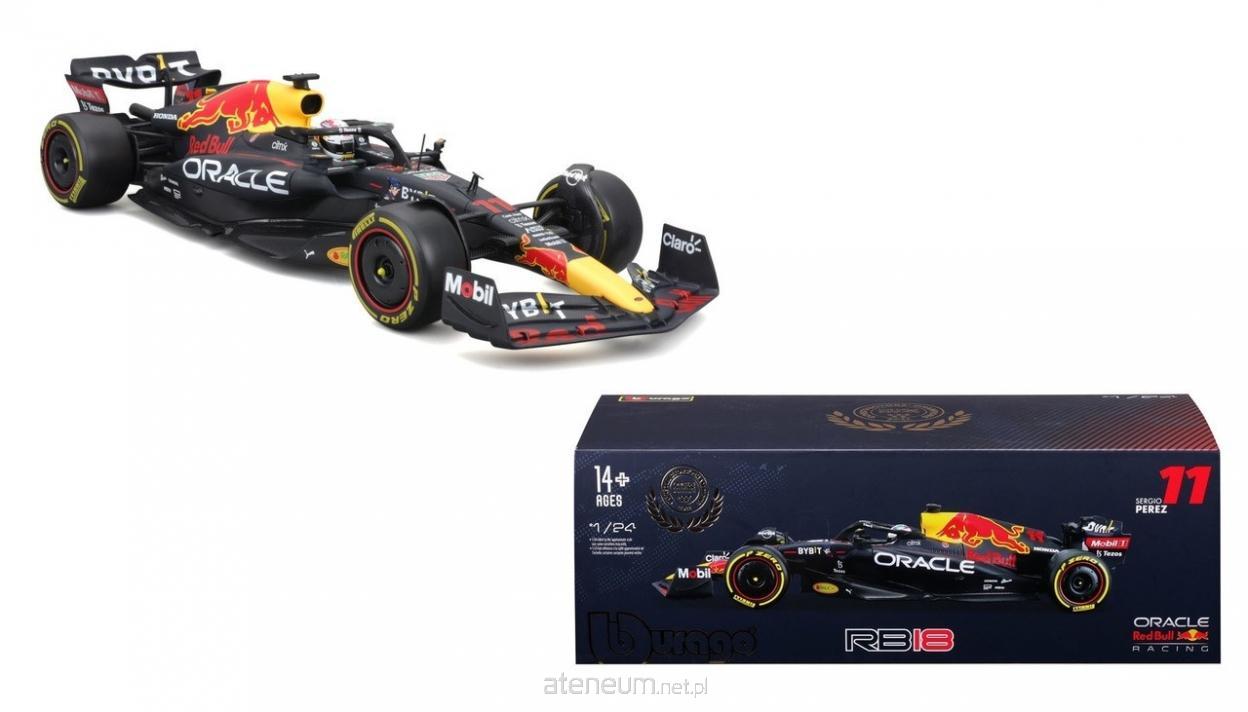Oracle Red Bull Racing RB18 (2022) #11 Sergio Perez oryginalny produkt marki Bburago, oficjalny, licencjonowany wzór pojazdu, metalowy model z plastikowymi elementami, perfekcyjne odwzorowanie szczegółów. model umieszczony na plastikowej podkładce oraz zamknięty w ochronnej gablotce. Długość bolidu ok. 23cm. Wymiary opakowania: 26 x 12 x 9cm. Bolid RB18 z sezonu 2022 kontynuując sukces poprzedniego modelu, RB16B, przyniósł wiele innowacji i usprawnień, mających na celu zwiększenie przyczepności i stabilności samochodu. Projektanci skoncentrowali się na optymalizacji układu aerodynamicznego, wprowadzając innowacyjne rozwiązania, które miały zapewnić kierowcom maksymalną kontrolę nad bolidem. W połączeniu z mocnym silnikiem dostarczonym przez Hondę, samochód zapewniał imponującą wydajność i dynamiczne osiągi. W sezonie 2022 bolid RB18 odnosił imponujące sukcesy, zdobywając zwycięstwa, pole position i cenne punkty. Dzięki doskonałej wydajności samochodu i umiejętnościom kierowców, zespół walczył o czołowe pozycje w klasyfikacji generalnej.