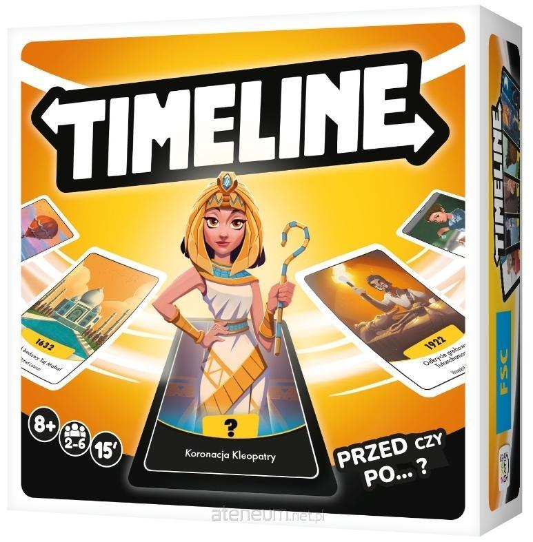 Jak sądzisz, co zostało wynalezione najwcześniej: szczoteczka do zębów, zegarek, a może teleskop? Który z cudów świata starożytnego zaczął być budowany najpóźniej? Czy ołówek we współczesnej formie jest z nami dłużej niż zapałki? Na te i inne pytania odpowie Timeline niezwykle przyjemna karcianka dla całej rodziny, w której wspólnie tworzymy oś czasu z wylosowanych kart wydarzeń. W pudełku znajdziesz 96 kart z historii ogólnej, od prehistorii aż po współczesność.