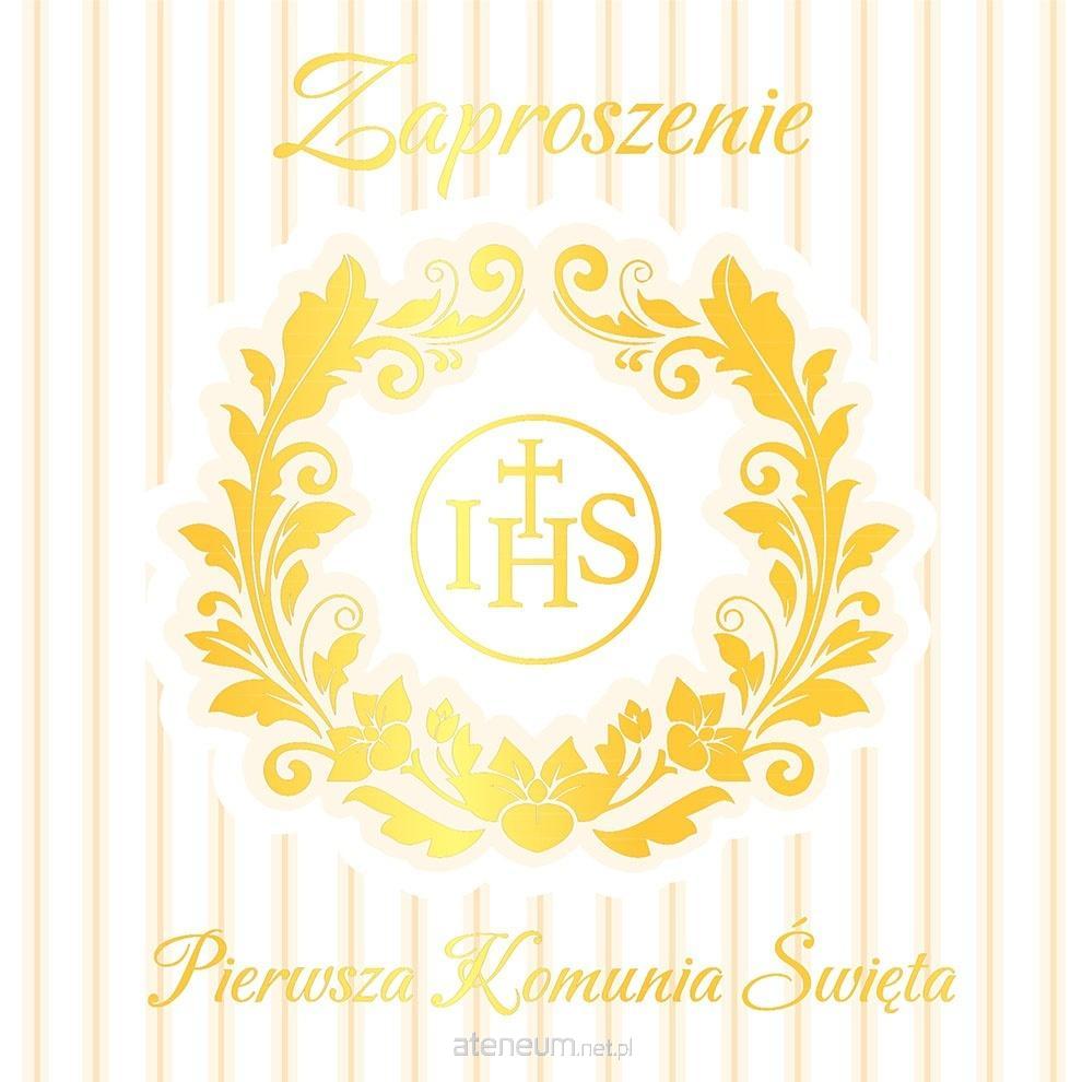 Zaproszenie w formacie kwadratu 1 5x 15 cm. Front złocony, w zestawie z wysokiej jakości kopertą. Pakowane po 5 sztuk.