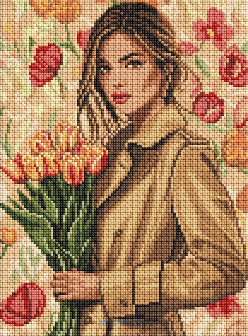 Diamentowa mozaika - Dziewczyna w płaszczu 30x40cm