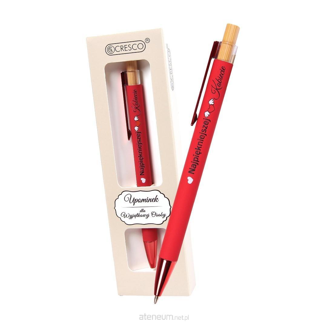 Metalowy, automatyczny długopis DYPLOMAT z nadrukiem Najpiękniejszej Kobiecie - jako prezent na różne okazje dla kobiet. Długopis z wymiennym wkładem typu zenith. Zapakowany w prezentowe etui.