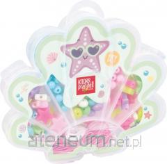 Opakowanie zawiera koraliki do zaprasowywania, z których można wykonać dwa motywy na dołączonej podkładce. Zestaw zawiera również pęsetę, papier do zaprasowywania oraz instrukcję.