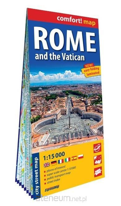 Starożytne zabytki na Forum Romanum, rozsławiona przez kino Fontanna di Trevi i dostojne bazyliki. Dwustronnie laminowany, wygodny w składaniu plan interesujących dla turysty, centralnych dzielnic Rzymu w szczegółowej skali 1:15 000 (1 cm 150 m) pomoże odkryć uroki Wiecznego Miasta.
