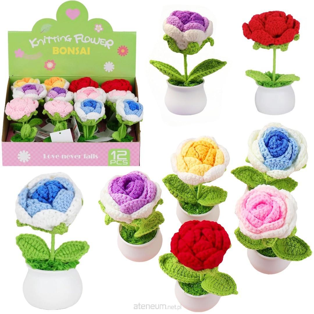 Materiał: Wysokiej jakości włóczka bawełniano-akrylowa, tworzywo sztuczne (doniczka).