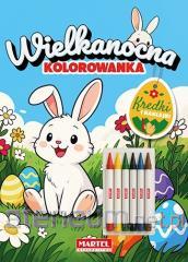 Radosna, wiosenna odsłona świątecznych zabaw. Bohaterem tej części jest sympatyczny baranek w otoczeniu kurczaczków, bazi i pierwszych kwiatów. Obrazki są duże i wyraźne, co ułatwia zabawę nawet młodszym dzieciom. Całość uzupełnia arkusz naklejek gratis - można nimi udekorować pokolorowane strony albo wykorzystać je do ozdobienia własnoręcznie robionych kartek świątecznych dla bliskich.