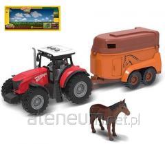 Zabawka jest bardzo dobrze wykonana i nie odbiega wyglądem od prawdziwego ciągnika. W zestawie znajdziemy przyczepkę zagrodową, rolniczą. Oczywiście całość posiada wiele ruchomych elementów takich jak: podnoszona klapa przyczepy, rozkładana podpórka przyczepy. Zabawa stanie się o wiele ciekawsza dzięki przyciskom umieszczonym na dachu ciągnika. Po ich wciśnięciu usłyszmy dźwięki traktora oraz zapalą się światła.