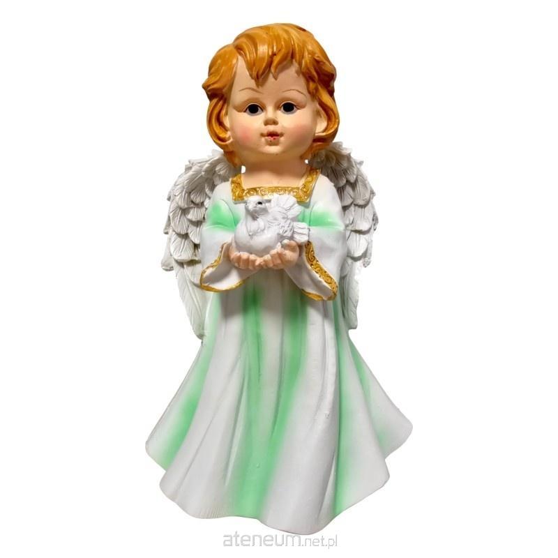 Figurka ma imponujące 22 cm wysokości i 15 cm szerokości, co czyni ją wyrazistym, ale subtelnym elementem wystroju. Wykonana została z trwałej żywicysyntetycznej, co zapewnia precyzję detali i długowieczność. Aniołek ubrany jest w zieloną sukienkę - kolor ten symbolizuje naturę, nadzieję i życie.