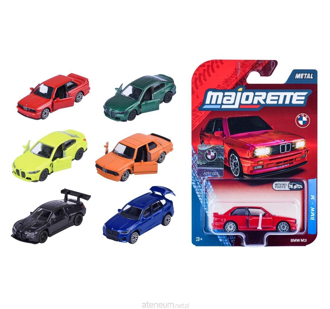 Majorette BMW Premium Cars, 6 rodzajów\nMetalowe pojazdy na licencji marki BMW, bez napędu, otwierane elementy, aktywne zawieszenie, długość: 7,5 cm, 3l+