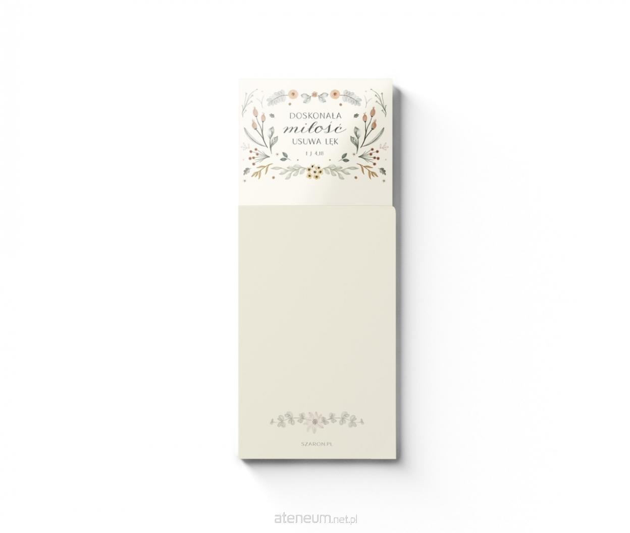 Przedstawiamy elegancki notes z magnesem \"Doskonała miłość\", ozdobiony delikatnym motywem kwiatowym. Jest to doskonały dodatek do Twojego domu lub biura, pozwalający na tworzenie list zakupów, notatek, czy zapisywanie inspirujących cytatów. Dzięki mocnemu magnesowi, łatwo przymocujesz go do lodówki lub innej metalowej powierzchni, zawsze mając go w zasięgu ręki.