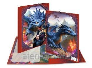Teczki w formacie A4 i A3 z wytrzymałej, sztywnej tektury. Zamykane na narożne gumki. Wewnątrz miejsce na imię i nazwisko dziecka oraz na notatki. Zadrukowany środek oraz trzy wewnętrzne klapki.
