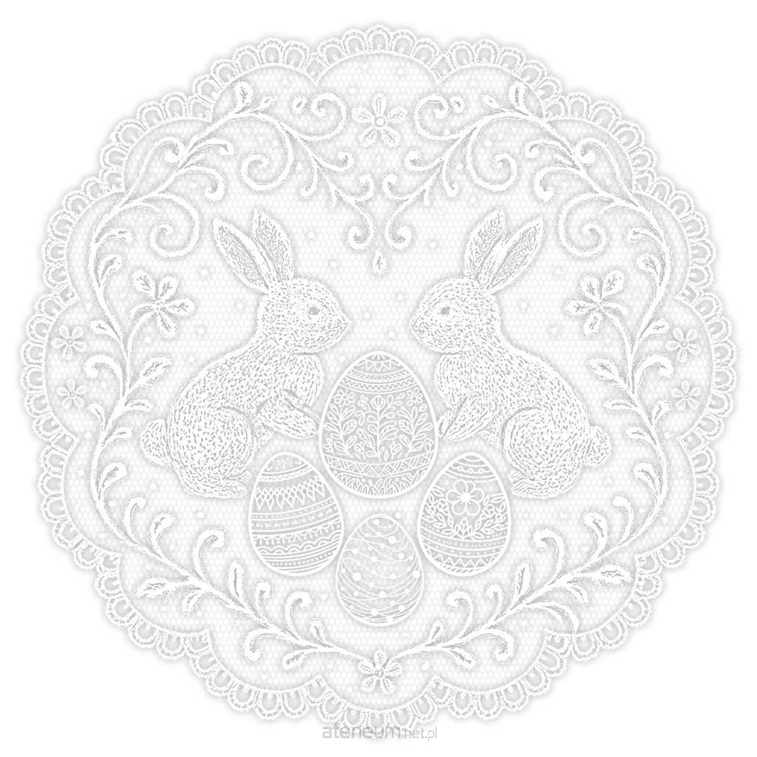 Serwetka na koszyczek z wielkanocnymi wzorami to elegancki dodatek, który podkreśla tradycyjny i świąteczny charakter koszyka. Ażurowy wzór z motywami pisanek, zajączków i roślinnych ornamentów nadaje całości lekkości oraz dekoracyjnego wyrazu. Biały kolor sprawia, że serwetka doskonale komponuje się z różnymi koszyczkami i dodatkami wielkanocnymi, tworząc spójną i estetyczną aranżację. Okrągły kształt o średnicy 40 cm pozwala na wygodne ułożenie serwetki w koszyczku lub wykorzystanie jej jako samodzielnej dekoracji.