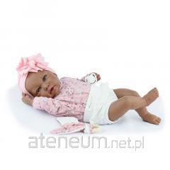 Niewielki, 28 cm, uroczy bobas w ślicznym stroju w zielone żabki to oryginalna wersja popularnego modelu Betty, zaprojektowanego i ręcznie wykonanego w Hiszpanii w firmie Marina & Pau. Urzeka słodki wyraz twarzy, wyrzeźbione na główce włoski niemowlęce oraz jasnoniebieskie, ręcznie malowane otwarte oczy. Podkreślone rysy twarzy, wyrzeźbione linie papilarne, dołeczki na piąstkach czy fałdki pod kolanami sprawiają, że bobas wygląda jak żywy. Dziewczynka została wykonana z gładkiego, przyjemnego w dotyku, bezpiecznego winylu. Ma zaznaczoną płeć. Proponowana dla dzieci w wieku od 3 lat, świetnie sprawdza się także podczas zabawy w kąpieli. Nie posiada włosów ani rzęs, brwi są lekko zaznaczone. Ruchome rączki, nóżki oraz główka sprawiają, że można ułożyć lalę w różnych pozycjach. Betty siedzi samodzielnie.