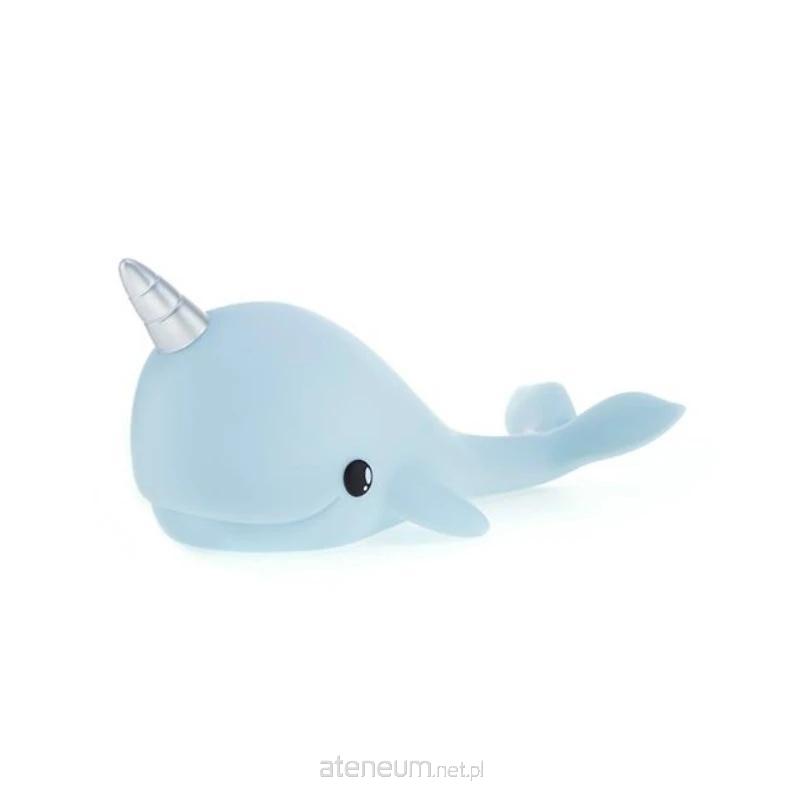 Lampka nocna narwal niebieski ze srebrnym rogiem, idealna do pokoju dziecięcego.